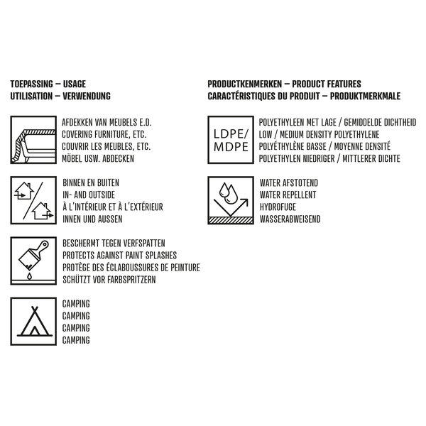 Afdekzeil LDPE, 4 x 4 meter. De folie is ideaal voor langdurige bescherming binnen en buiten in huis en tuin. De afdekfolie is gemaakt van gerecycled LDPE en herbruikbaar. Dit zeil is zeer belastbaar en beschermt tegen stof, verf, vuil en vocht (type 50 kwaliteit).