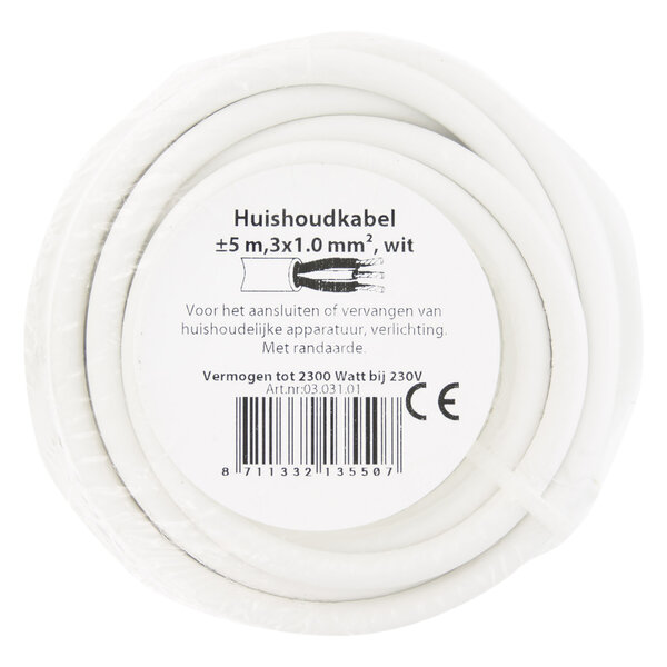 Huishoudsnoer VMVL - 3x1,0mm - 5mtr - Wit