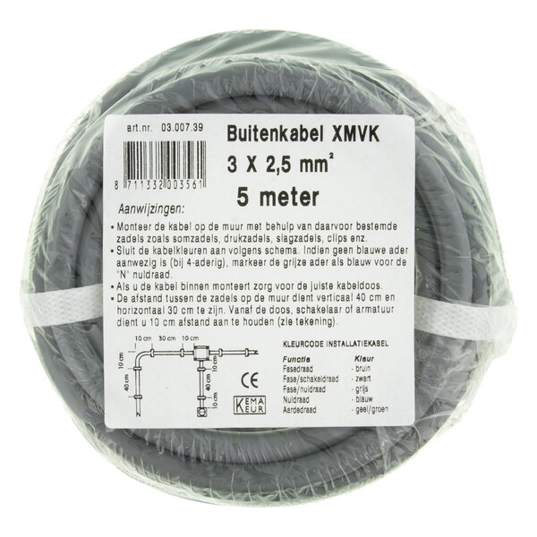 Buitenkabel XMVK 3x2,5mm - 5mtr (Grijs)