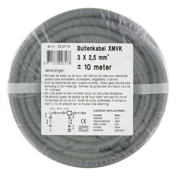 Buitenkabel XMVK 3x2,5mm - 10mtr (Grijs)