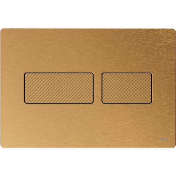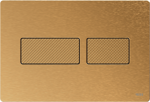 Bedieningsplaat met gestructureerd oppervlak voor TECE-spoelkast voor front- of planchetbediening. Zeer vlakke roestvrijstalen bedieningsplaat met bedieningstoetsen die voorzien zijn van een rubberen stootrand, inclusief bedieningsstangen en bevestigingsmateriaal. Bedieningsplaat met onzichtbare schroeven.