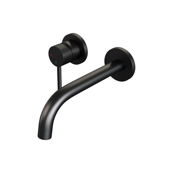 Brauer Black Carving Inbouw Wastafelmengkraan met Gebogen Uitloop & Rozetten - Model A1 - Geribbeld Hendel Links - Mat Zwart