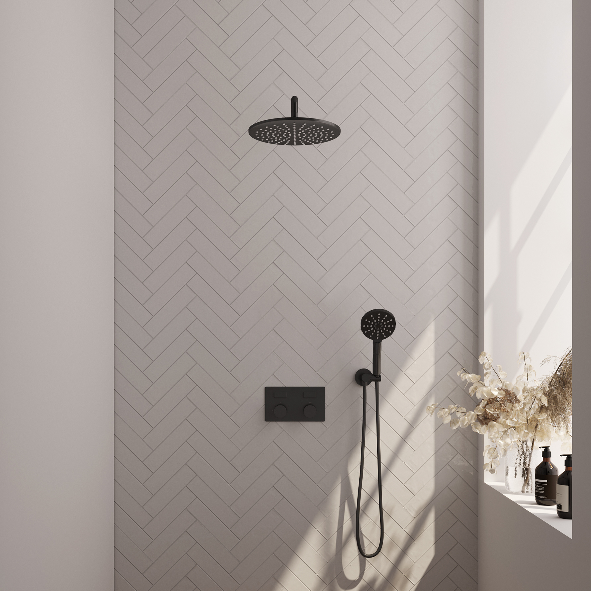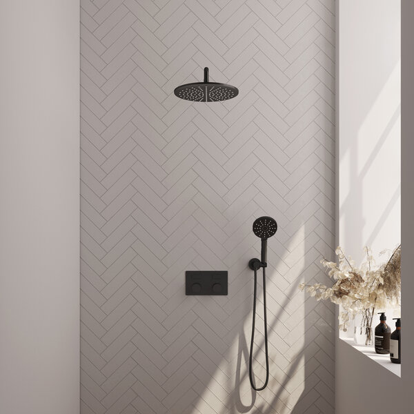 In onze thermostatische inbouw regendouche met drukknoppen komt alles samen: moderne feeling, luxe uitstraling en fijne functies. De drukknoppen zijn handig in gebruik en met de drukregelaar stel je het watervolume naar wens in. Dat is vooral handig als de douche wordt gedeeld met een aantal gezinsleden, iedereen kan de hoeveelheid water die de kraan geeft makkelijk zelf bepalen. Ideaal in deze tijd waarin duurzaamheid een belangrijk thema is, en bij de een meer leeft dan bij de ander.