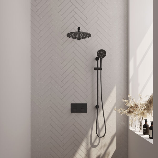 In onze thermostatische inbouw regendouche met drukknoppen komt alles samen: moderne feeling, luxe uitstraling en fijne functies. De drukknoppen zijn handig in gebruik en met de drukregelaar stel je het watervolume naar wens in. Dat is vooral handig als de douche wordt gedeeld met een aantal gezinsleden, iedereen kan de hoeveelheid water die de kraan geeft makkelijk zelf bepalen. Ideaal in deze tijd waarin duurzaamheid een belangrijk thema is, en bij de een meer leeft dan bij de ander.