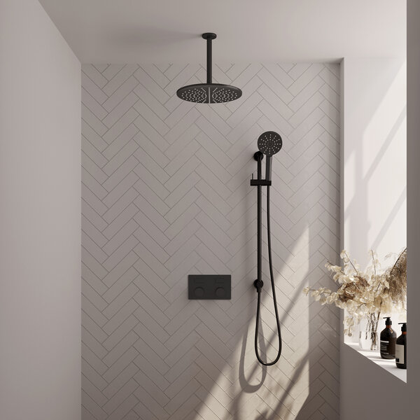 In onze thermostatische inbouw regendouche met drukknoppen komt alles samen: moderne feeling, luxe uitstraling en fijne functies. De drukknoppen zijn handig in gebruik en met de drukregelaar stel je het watervolume naar wens in. Dat is vooral handig als de douche wordt gedeeld met een aantal gezinsleden, iedereen kan de hoeveelheid water die de kraan geeft makkelijk zelf bepalen. Ideaal in deze tijd waarin duurzaamheid een belangrijk thema is, en bij de een meer leeft dan bij de ander.