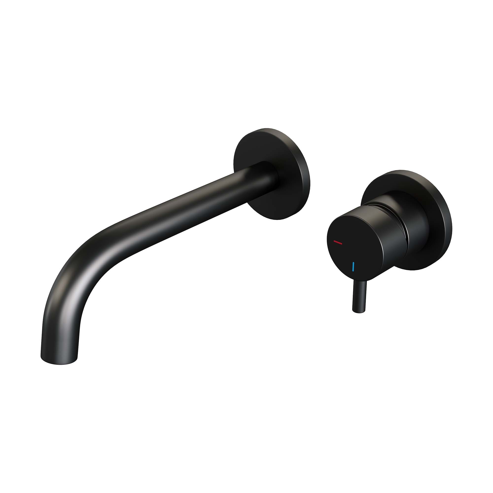 Brauer Black Edition Inbouw Wastafelmengkraan met Gebogen Uitloop & Rozetten - Model B1 - Hendel Rechts - Mat Zwart