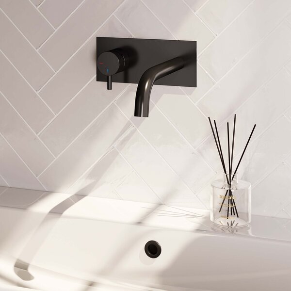 Brauer Black Edition Inbouw Wastafelmengkraan met Gebogen Uitloop & Afdekplaat - Model B2 - Hendel Links - Mat Zwart