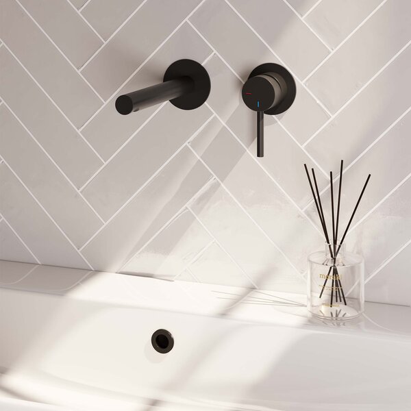 Brauer Black Edition Inbouw Wastafelmengkraan met Rechte Uitloop & Rozetten - Model A1 - Hendel Rechts - Mat Zwart