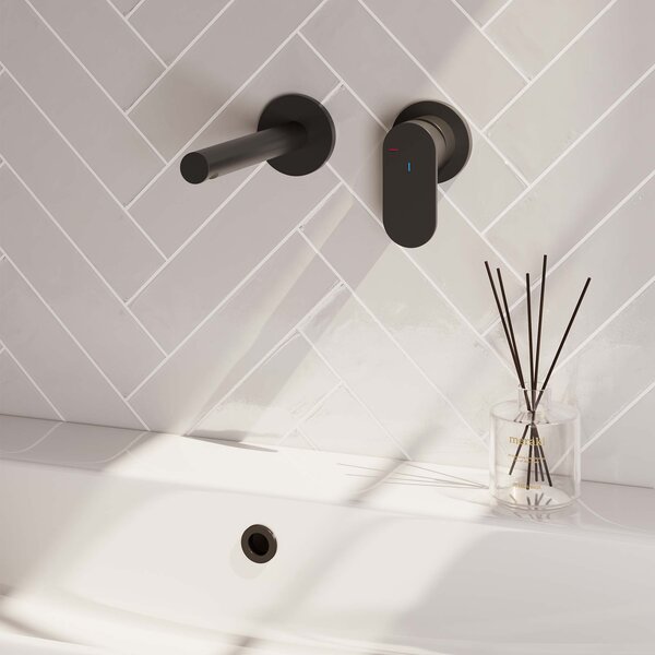 Brauer Black Edition Inbouw Wastafelmengkraan met Rechte Uitloop & Rozetten - Model C1 - Hendel Rechts - Mat Zwart