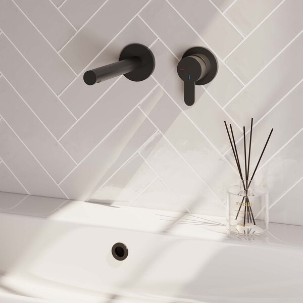 Brauer Black Edition Inbouw Wastafelmengkraan met Rechte Uitloop & Rozetten - Model D1 - Hendel Rechts - Mat Zwart