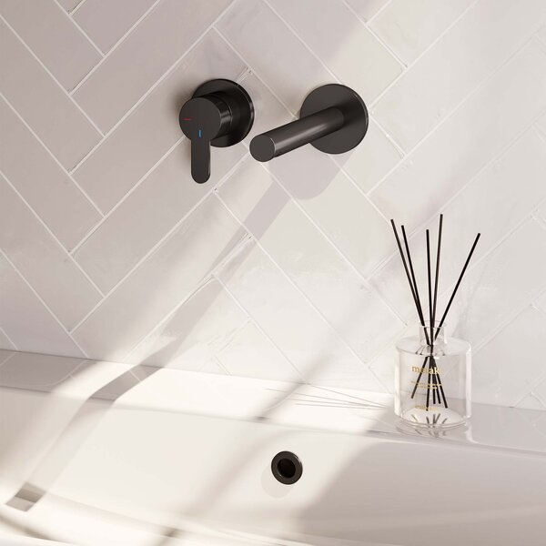 Brauer Black Edition Inbouw Wastafelmengkraan met Rechte Uitloop & Rozetten - Model D2 - Hendel Links - Mat Zwart