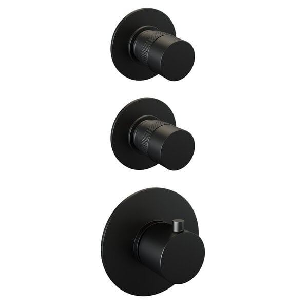 Brauer Black Editon Regendoucheset: Thermostatische Inbouwkraan met Stopkranen, Plafondarm, Douchekop 20cm, Glijstang met Wateruitlaat, 3-Standen Handdouche & Doucheslang - Set 23 - Draaiknoppen - Mat Zwart