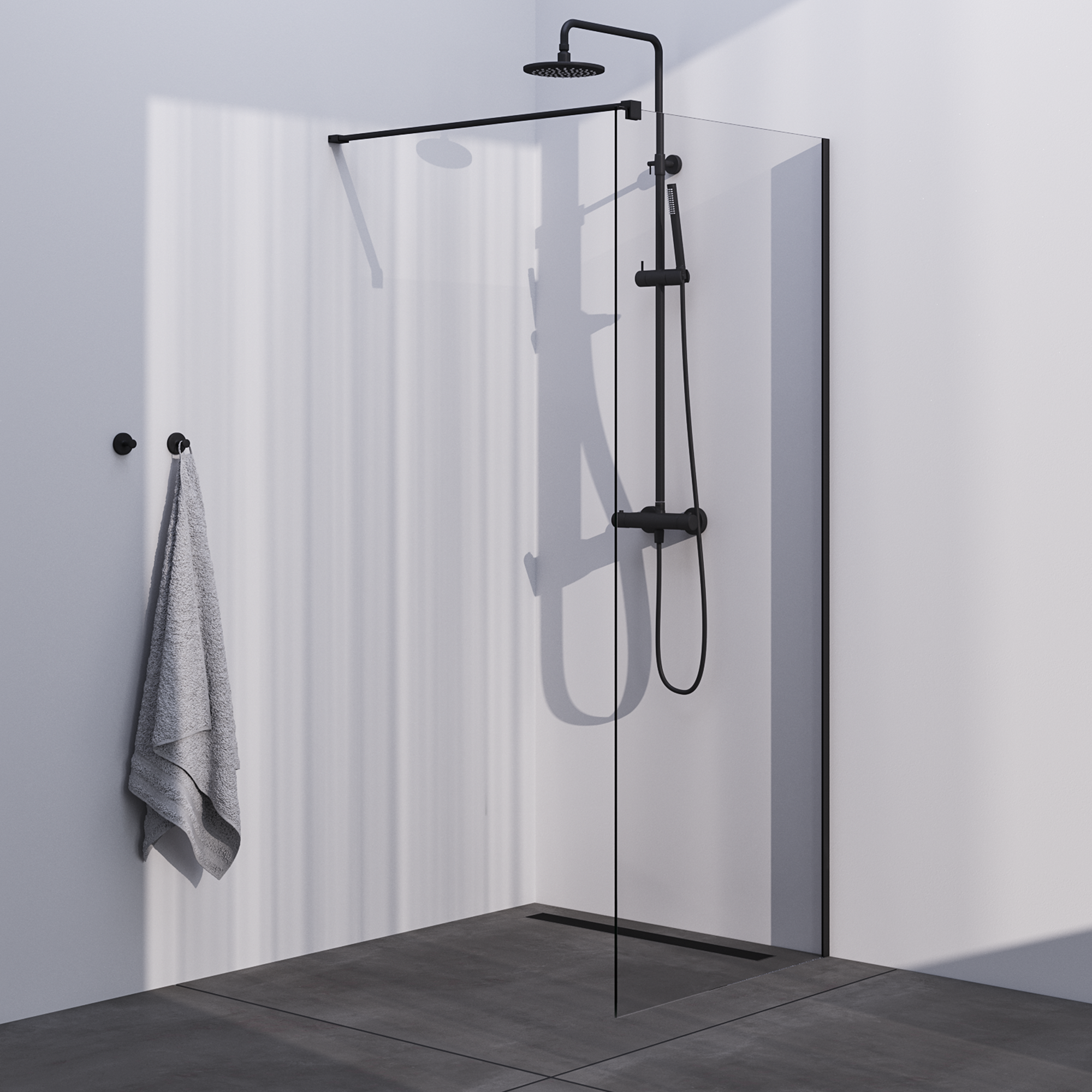 Brauer Black Season Inloopdouche - 8mm Helder Glaswand - 80x200cm - Muurprofiel & Stabilisatiestang - Mat Zwart