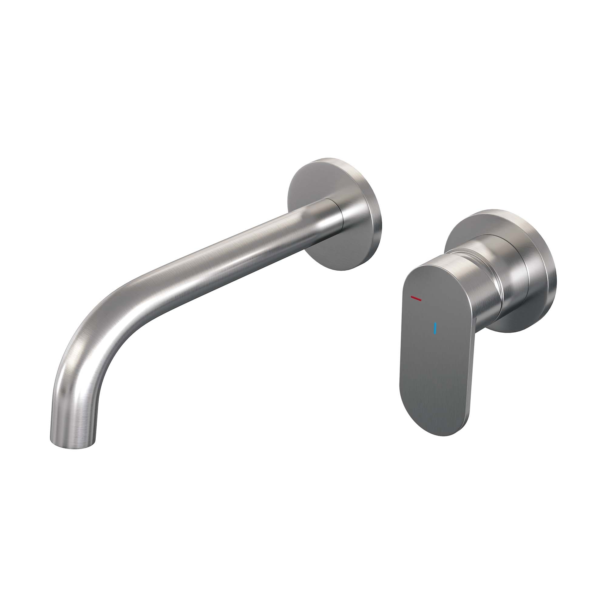 Brauer Brushed Edition Inbouw Wastafelmengkraan met Gebogen Uitloop & Rozetten - Model C1 - Hendel Rechts - PVD - Geborsteld RVS
