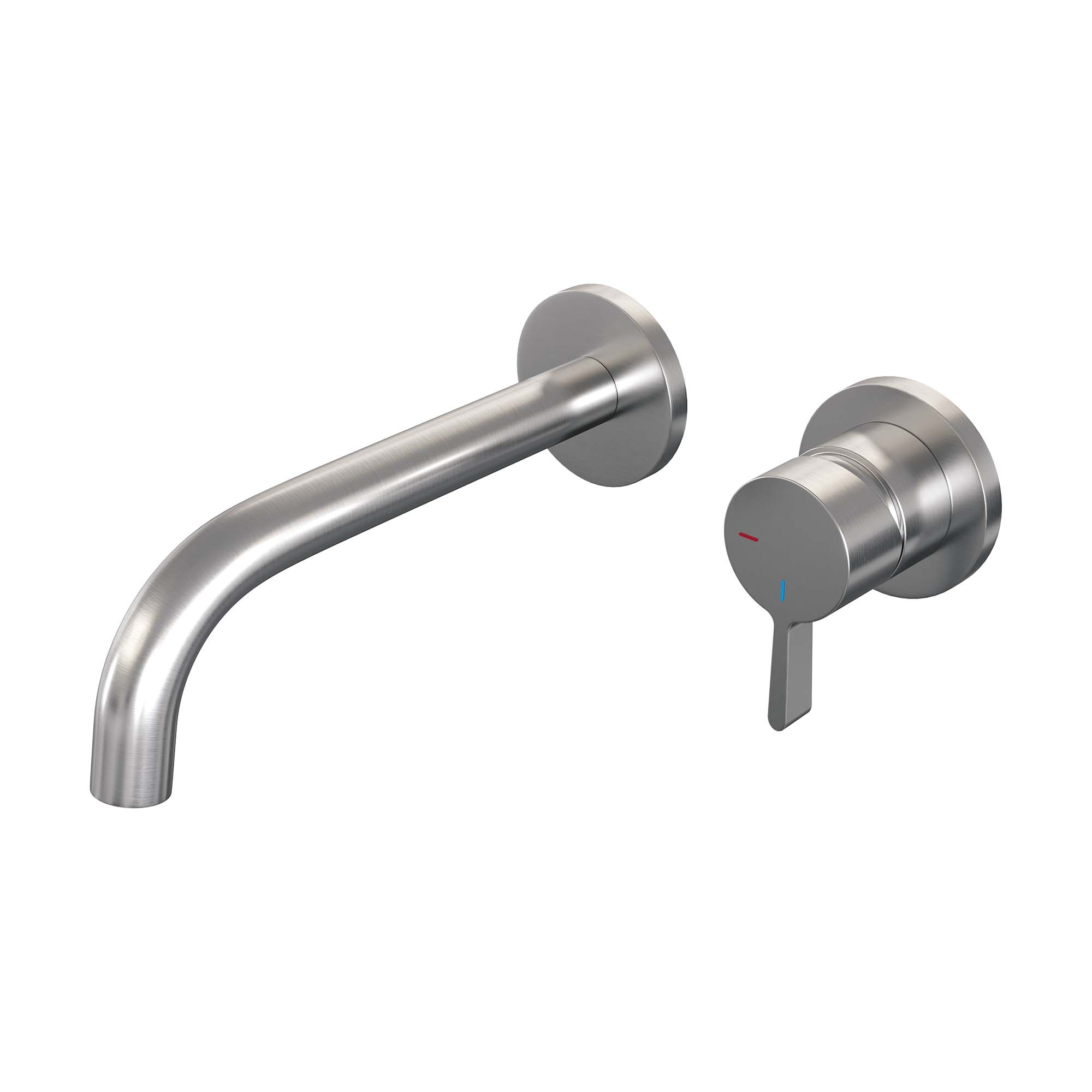 Brauer Brushed Edition Inbouw Wastafelmengkraan met Gebogen Uitloop & Rozetten - Model E1 - Hendel Rechts - PVD - Geborsteld RVS