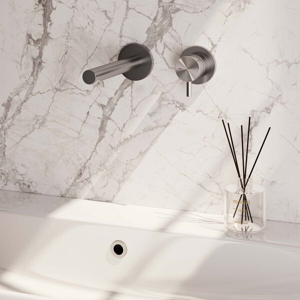 Geef jouw badkamermeubel een moderne uitstraling met onze inbouw wastafelmengkraan met rechte uitloop, houd meer ruimte over op jouw wastafel en bied jezelf schoonmaakgemak. Creëer symmetrie: de kraan is verkrijgbaar in een linkse en rechtse variant. Kies je voor een kraan met rozetten of een afdekplaat?