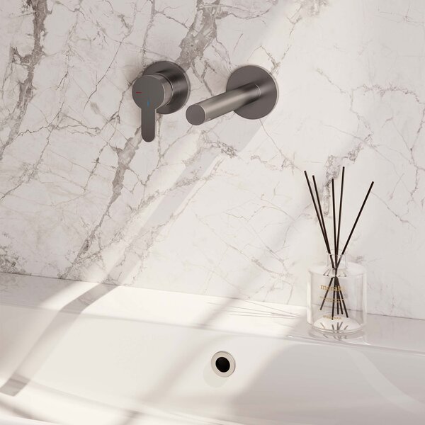Geef jouw badkamermeubel een moderne uitstraling met onze inbouw wastafelmengkraan met rechte uitloop, houd meer ruimte over op jouw wastafel en bied jezelf schoonmaakgemak. Creëer symmetrie: de kraan is verkrijgbaar in een linkse en rechtse variant. Kies je voor een kraan met rozetten of een afdekplaat?