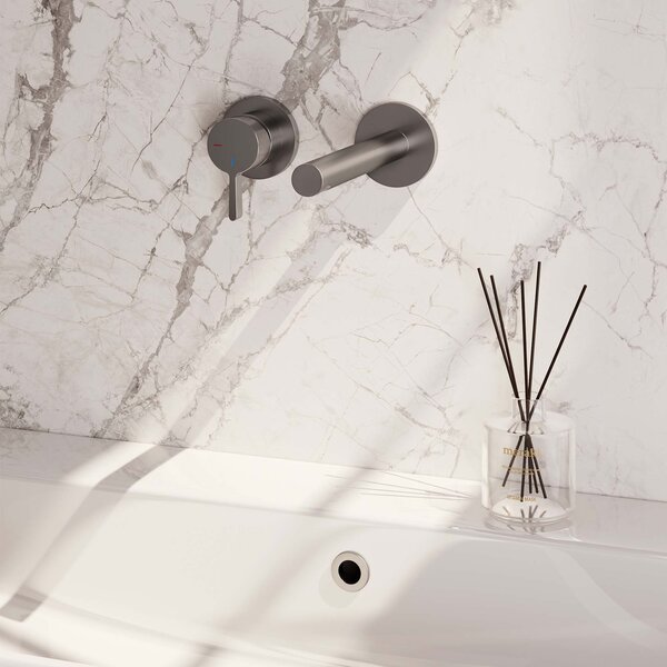 Geef jouw badkamermeubel een moderne uitstraling met onze inbouw wastafelmengkraan met rechte uitloop, houd meer ruimte over op jouw wastafel en bied jezelf schoonmaakgemak. Creëer symmetrie: de kraan is verkrijgbaar in een linkse en rechtse variant. Kies je voor een kraan met rozetten of een afdekplaat?