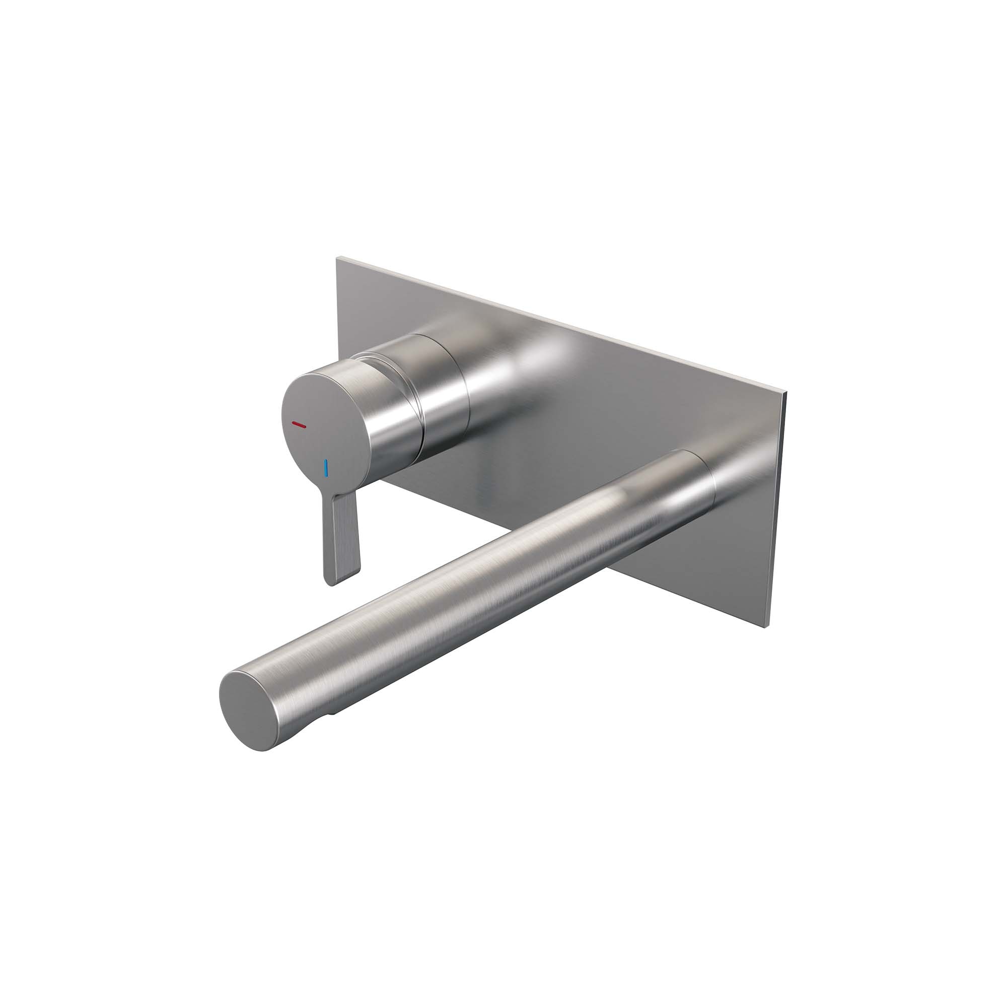 Brauer Brushed Edition Inbouw Wastafelmengkraan met Rechte Uitloop & Afdekplaat - Model E2 - Hendel Links - PVD - Geborsteld RVS