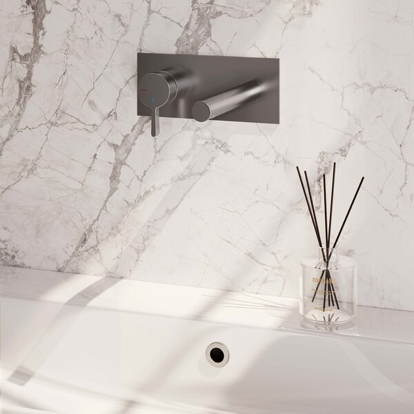 Geef jouw badkamermeubel een moderne uitstraling met onze inbouw wastafelmengkraan met rechte uitloop, houd meer ruimte over op jouw wastafel en bied jezelf schoonmaakgemak. Creëer symmetrie: de kraan is verkrijgbaar in een linkse en rechtse variant. Kies je voor een kraan met rozetten of een afdekplaat?