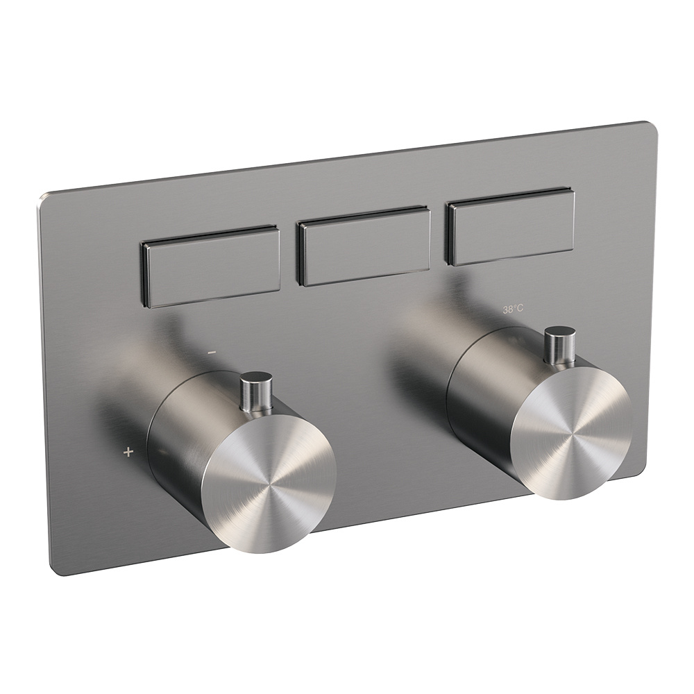 Brauer Brushed Edition Thermostatisch Inbouwkraan met 3-Weg Omstel - 3 Drukknoppen & 2 Geribbeld Draaiknoppen - PVD - Geborsteld RVS