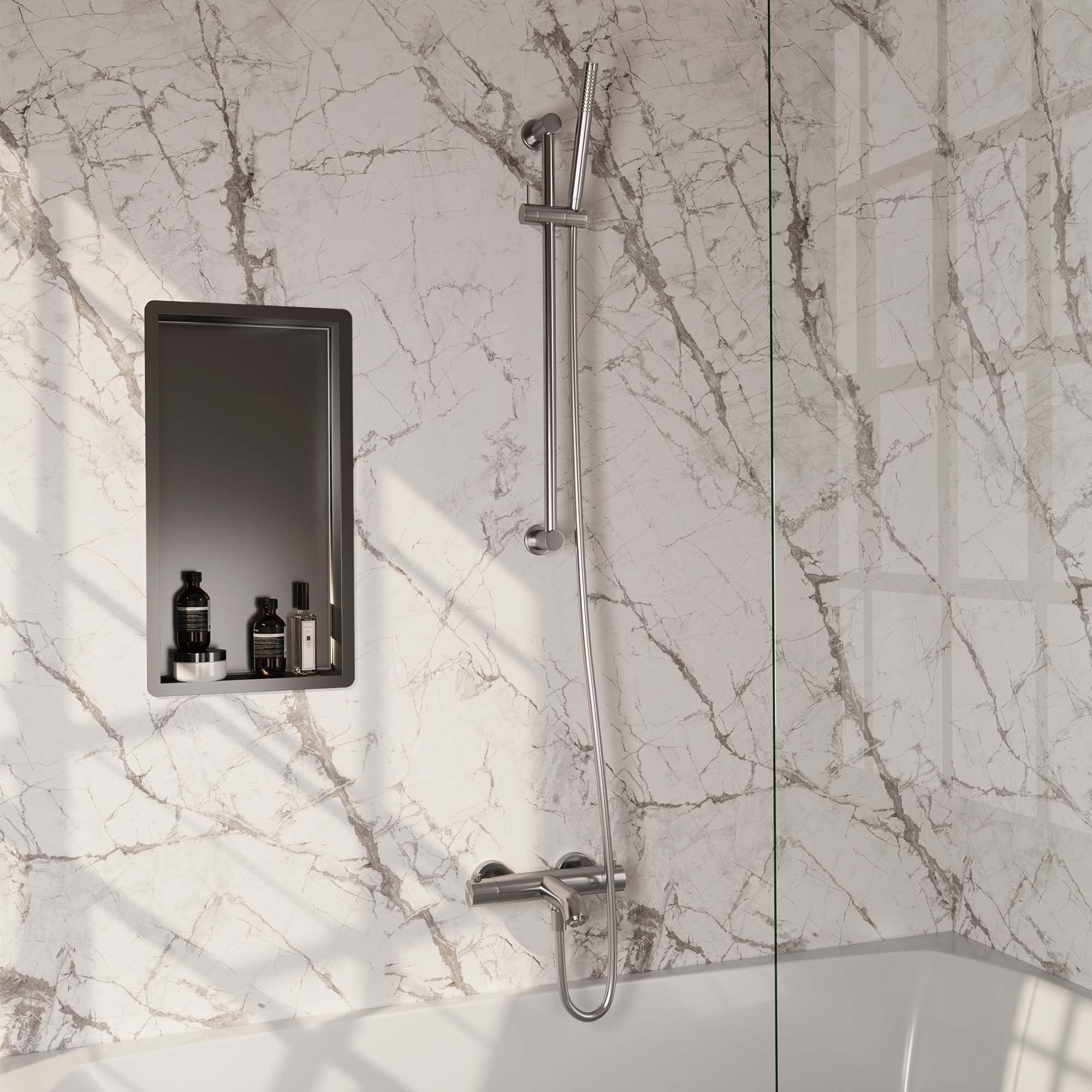 Wil je kunnen douchen én kunnen genieten van een warm bad? Kijk dan eens naar onze thermostatische opbouw badkraan. Verkrijgbaar met een staaf handdouche, welke beschikt over een compacte harde straal.
