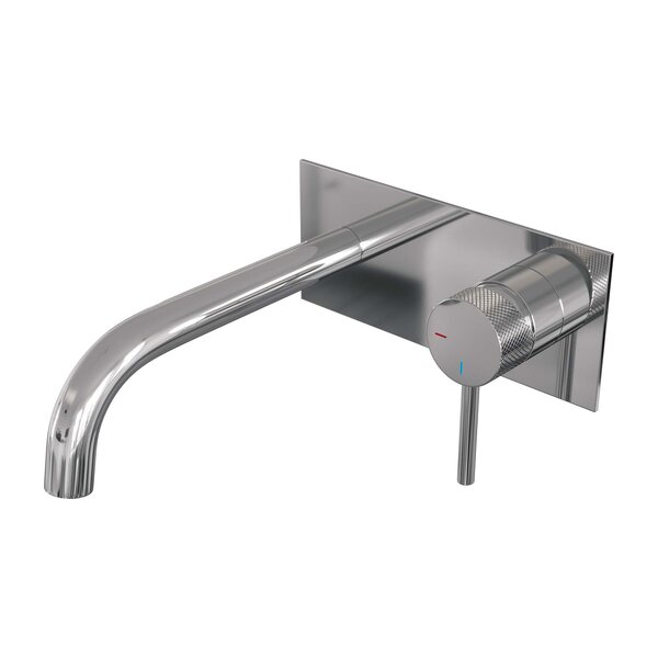 Brauer Chrome Carving Inbouw Wastafelmengkraan met Gebogen Uitloop & Afdekplaat - Model A1 - Geribbeld Hendel Rechts - Chroom