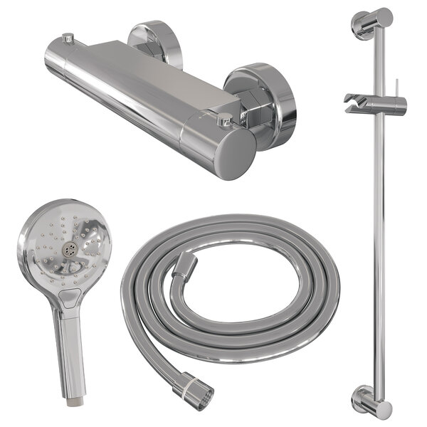 Een thermostatische opbouw douchekraan met comfort: de gewenste hoogte van de handdouche en de gewenste temperatuur kunnen eenvoudig worden ingesteld. Verkrijgbaar met een 3-standen handdouche, welke beschikt over drie verschillende straalsoorten: