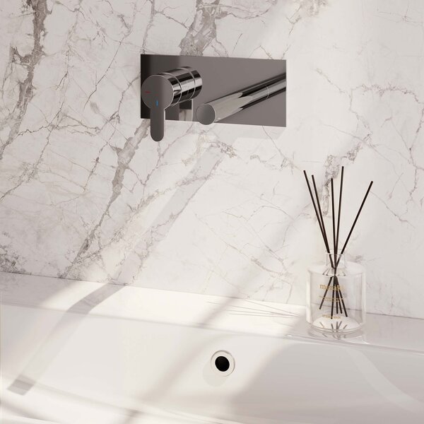 Geef jouw badkamermeubel een moderne uitstraling met onze inbouw wastafelmengkraan met rechte uitloop, houd meer ruimte over op jouw wastafel en bied jezelf schoonmaakgemak. Creëer symmetrie: de kraan is verkrijgbaar in een linkse en rechtse variant. Kies je voor een kraan met rozetten of een afdekplaat?