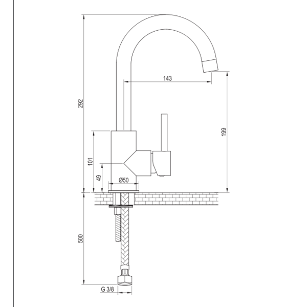 • Waterverbruik ronde uitloop bij 3 bar: 15 L/min