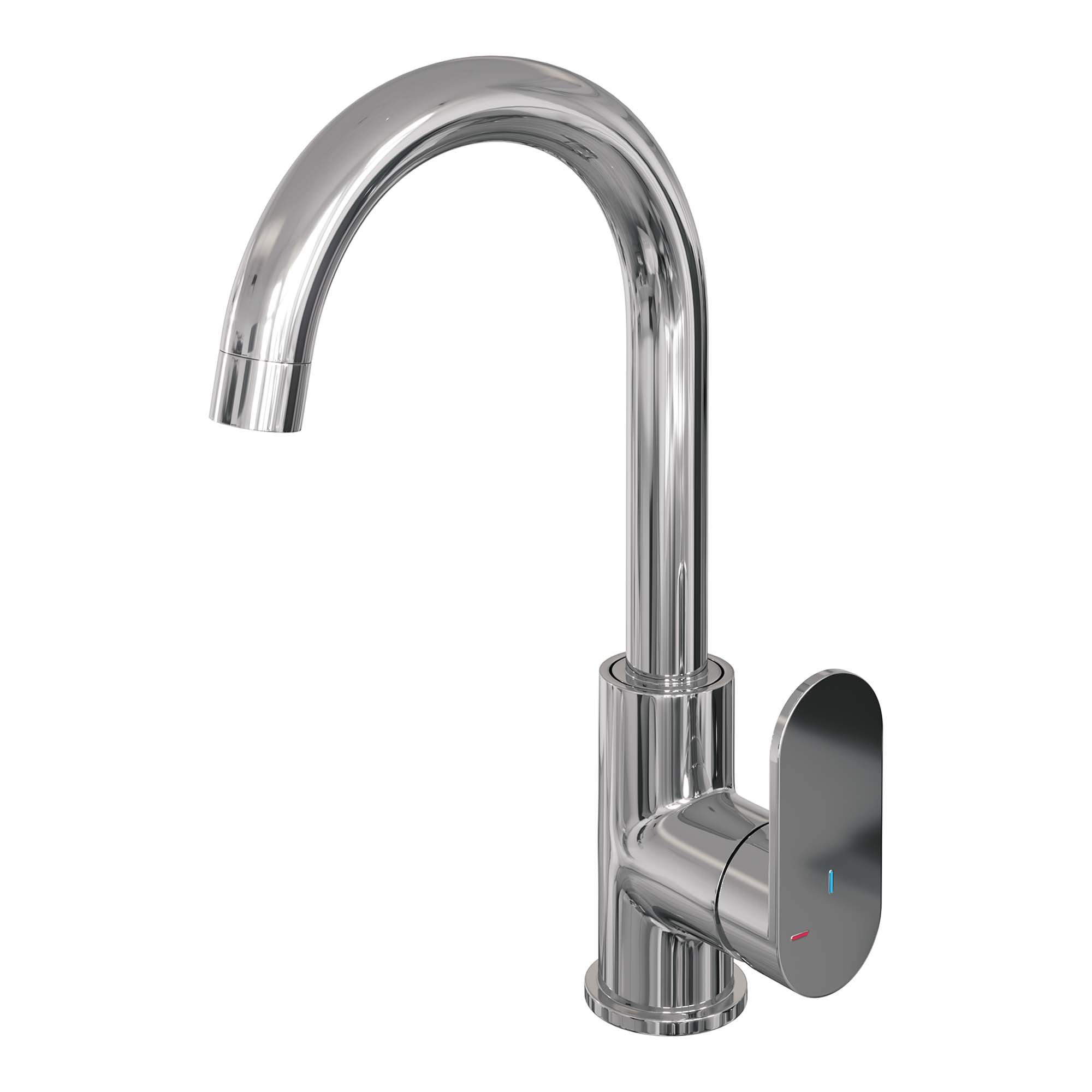 Harmonie in uitstraling en functionaliteit, dat is kenmerkend voor onze hoge opbouw wastafelmengkraan! Een elegant design aangevuld met een handige draaibare uitloop en verticale hendel. Kies je voor een platte of ronde uitloop?