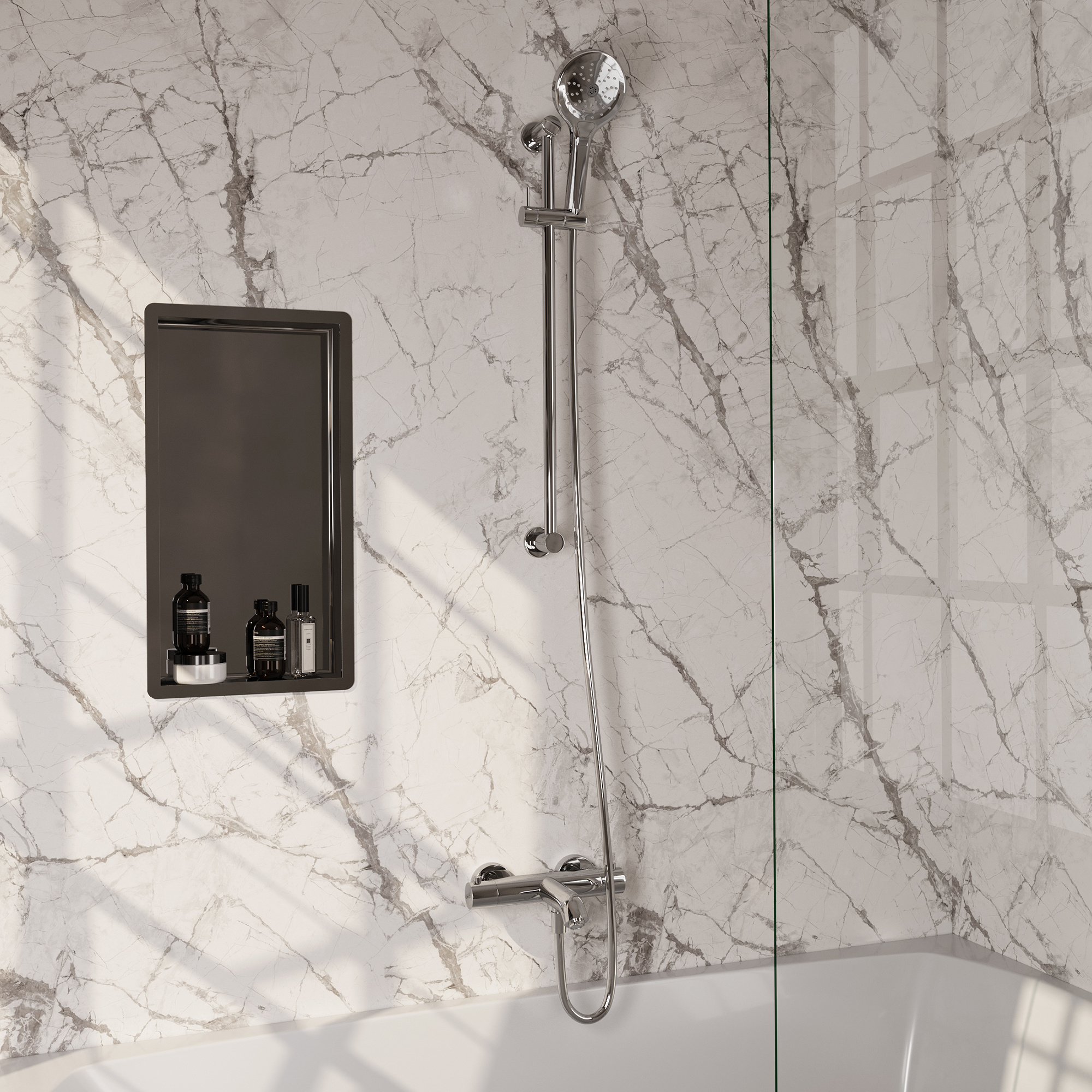 Wil je kunnen douchen én kunnen genieten van een warm bad? Kijk dan eens naar onze thermostatische opbouw badkraan. Verkrijgbaar met een 3-standen handdouche. De 3-standen handdouche heeft drie verschillende straalsoorten: