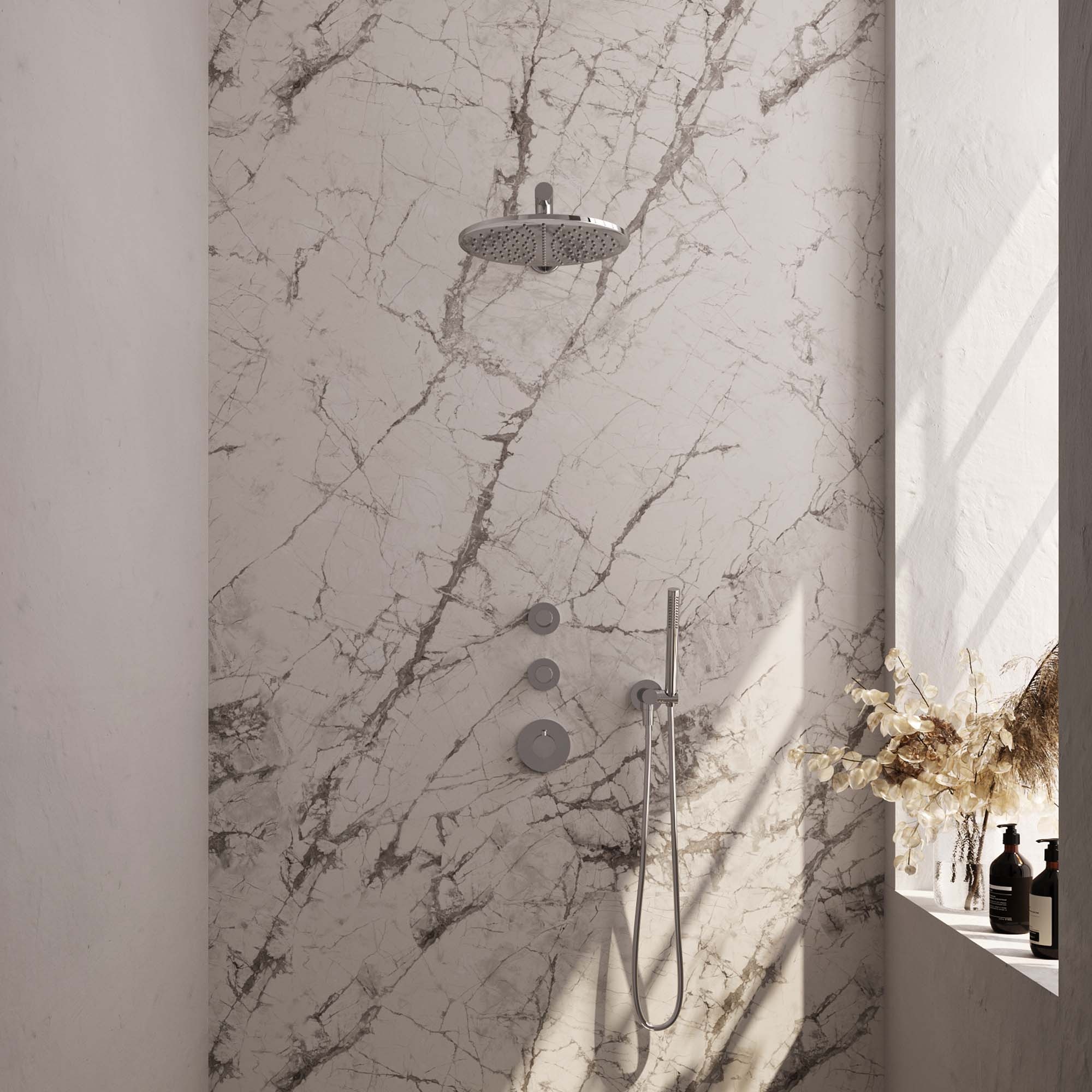 In stijl genieten van een heerlijke douche? Kijk dan eens naar onze thermostatische inbouw regendouches met stopkranen! De inbouw sets geven jouw doucheomgeving een highend look.