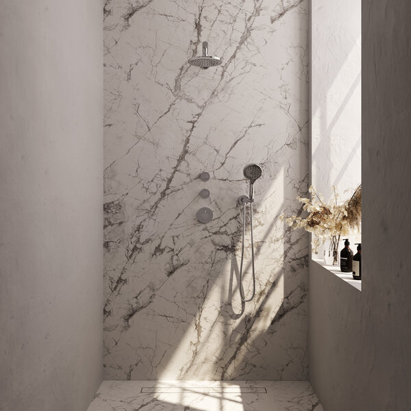 Op zoek naar een hoofd- en handdouche die tegelijkertijd te gebruiken zijn? Dat kan met deze set! Stopkranen kunnen onafhankelijk van elkaar worden bedient.