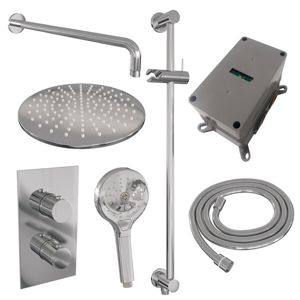 Brauer Chrome Editon Regendoucheset: Thermostatische Inbouwkraan met 3-Weg Omstel, Gebogen Wandarm, Douchekop 30cm, Glijstang met Wateruitlaat, 3-Standen Handdouche & Doucheslang - Set 46 - Draaiknoppen - Chroom