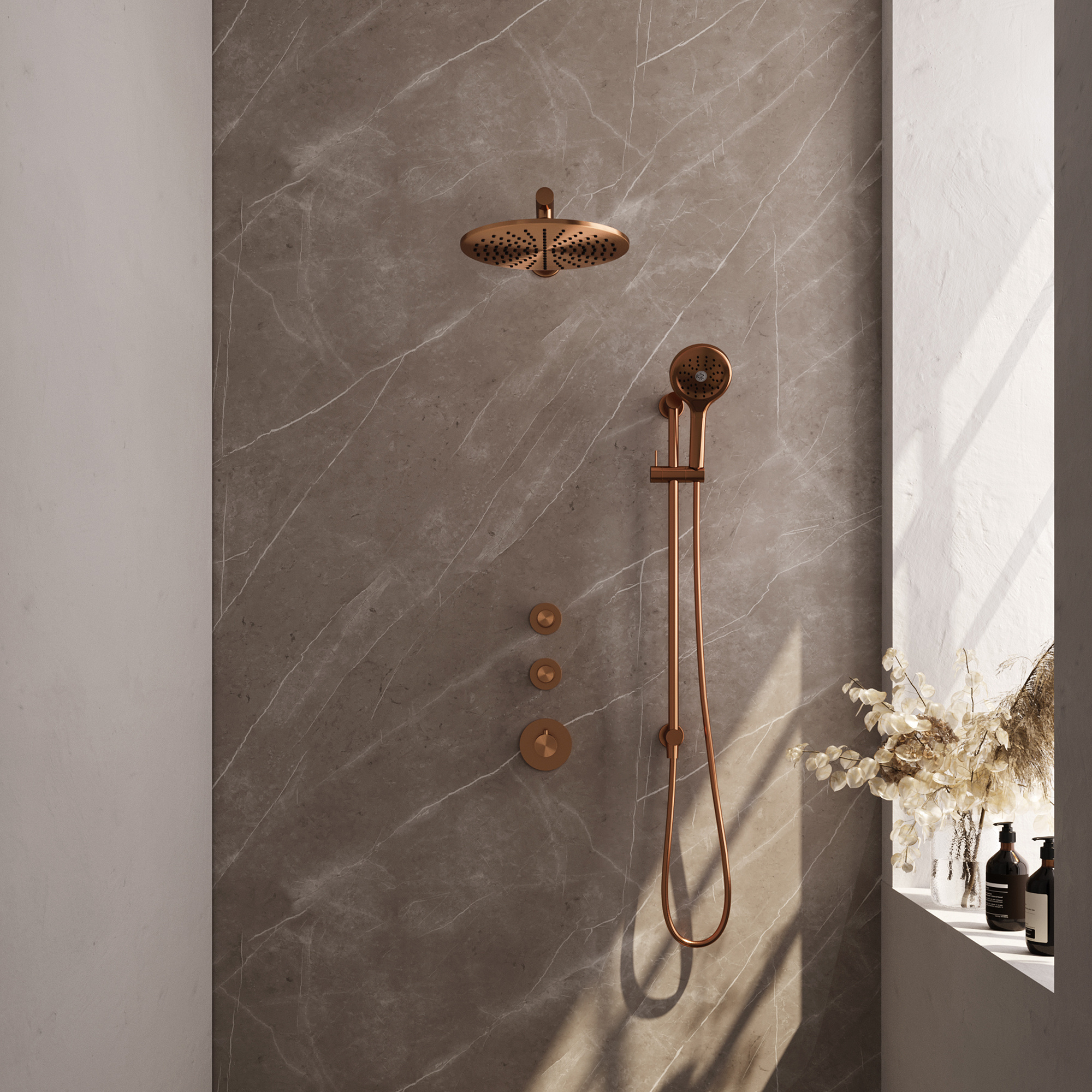 Op zoek naar een hoofd- en handdouche die tegelijkertijd te gebruiken zijn? Dat kan met deze sets! Stopkranen kunnen onafhankelijk van elkaar worden bedient. In de sets wordt gebruik gemaakt van een complete inbouw thermostaat met stopkranen, welke op twee manieren kan worden ingebouwd. Een alternatieve plaatsing van de thermostaat en stopkranen, of het toevoegen van een derde of vierde stopkraan voor extra hoofd- en handdouches, is met deze sets niet mogelijk.