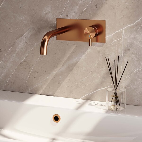 Brauer Copper Edition Inbouw Wastafelmengkraan met Gebogen Uitloop & Afdekplaat - Model B1 - Hendel Rechts - PVD - Geborsteld Koper