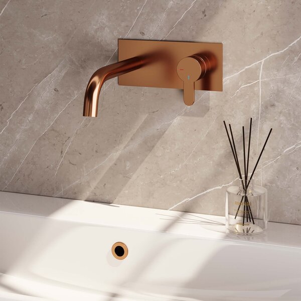 Brauer Copper Edition Inbouw Wastafelmengkraan met Gebogen Uitloop & Afdekplaat - Model D1 - Hendel Rechts - PVD - Geborsteld Koper