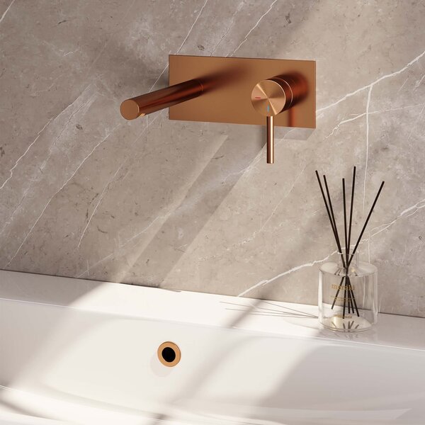Brauer Copper Edition Inbouw Wastafelmengkraan met Rechte Uitloop & Afdekplaat - Model A1 - Hendel Rechts - PVD - Geborsteld Koper