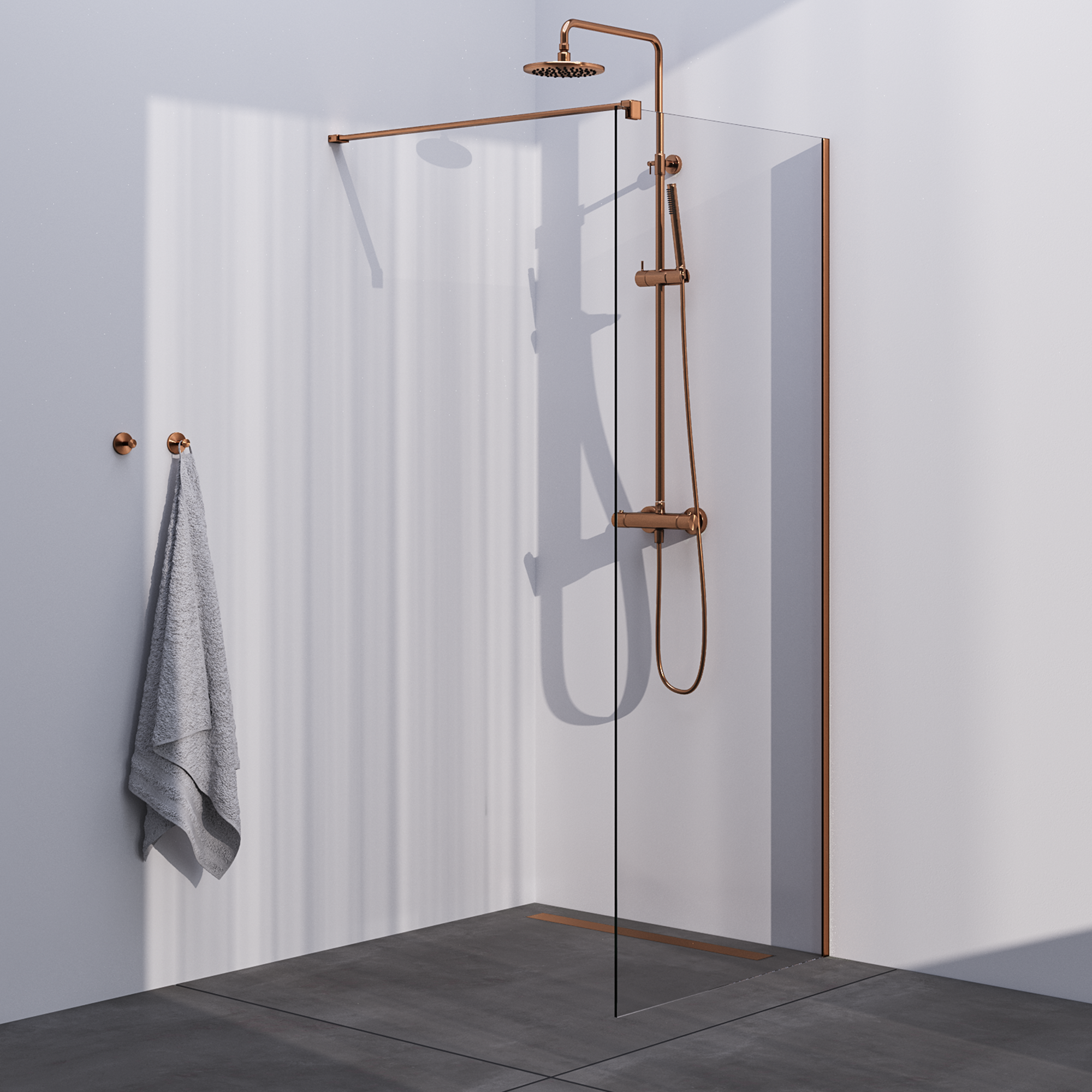 Brauer Copper Season Inloopdouche - 8mm Helder Glaswand - 80x200cm - Muurprofiel & Stabilisatiestang - Geborsteld Koper