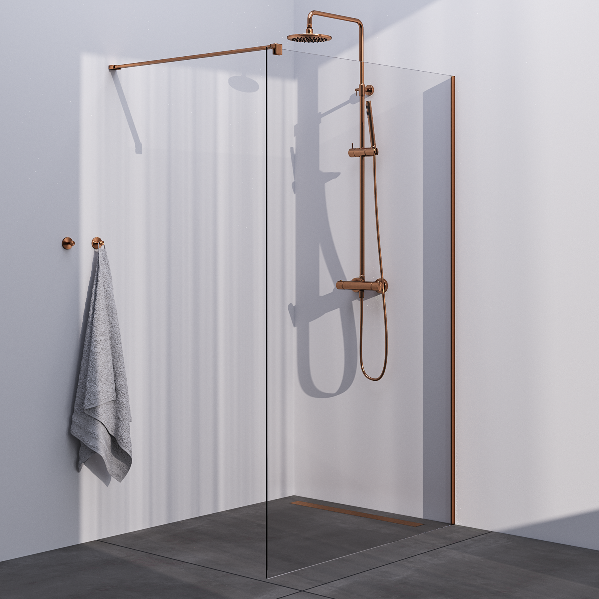 Brauer Copper Season Inloopdouche - 8mm Helder Glaswand - 130x200cm - Muurprofiel & Stabilisatiestang - Geborsteld Koper