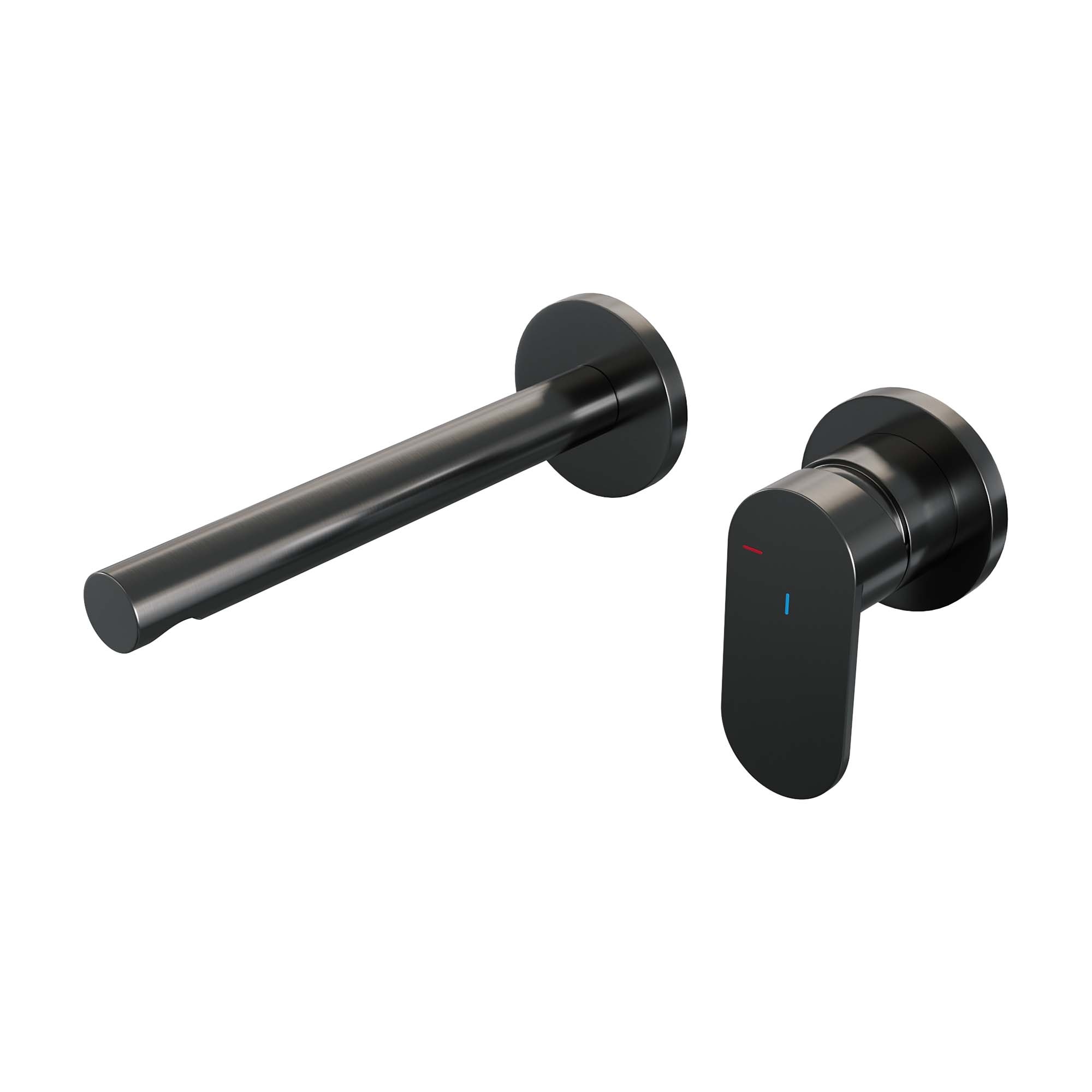 Brauer Gunmetal Edition Inbouw Wastafelmengkraan met Rechte Uitloop & Rozetten - Model C1 - Hendel Rechts - PVD - Geborsteld Gunmetal