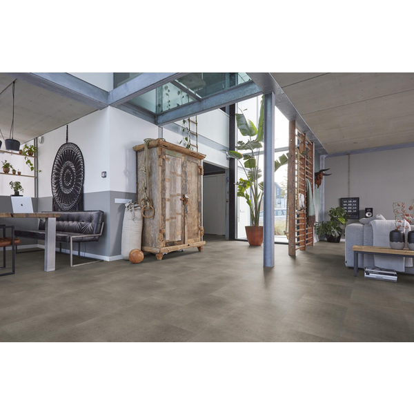 Ben je opzoek naar een echte eyecather? Dan zijn deze betonlook tegels echt wat voor jou! Deze tegels hebben een allover structuur en geven je woonkamer een industriële look. De collectie is verkrijgbaar in twee formaten: 91,4 x 45,7 cm en 91,4 x 91,4 cm. Dit tegeldecor in XL formaat is een echte blikvanger! De rechthoekige tegel is verkrijgbaar als verlijmde uitvoering, maar ook met een clickverbinding die voorzien is van een geluiddempende onderlaag.