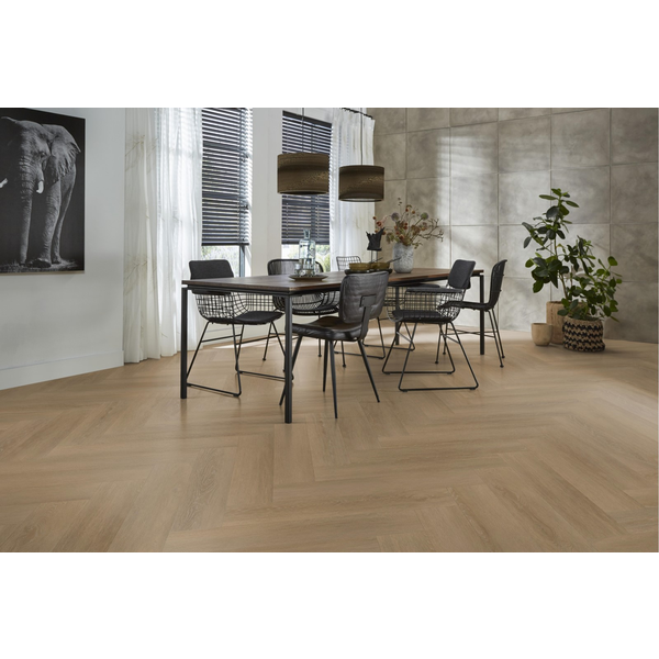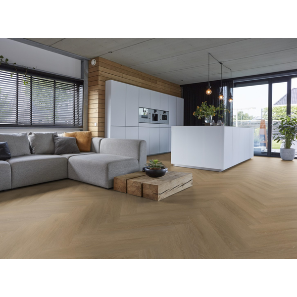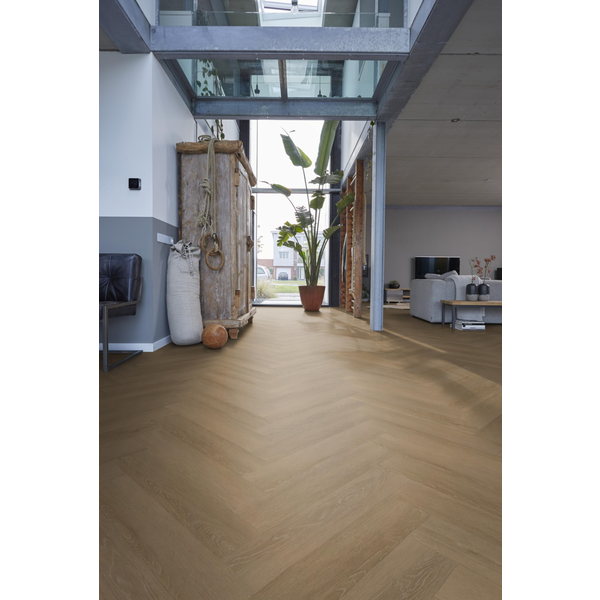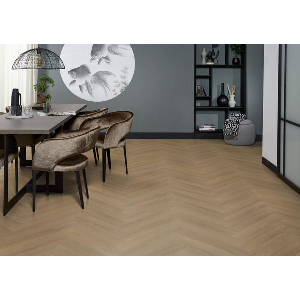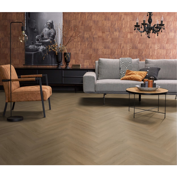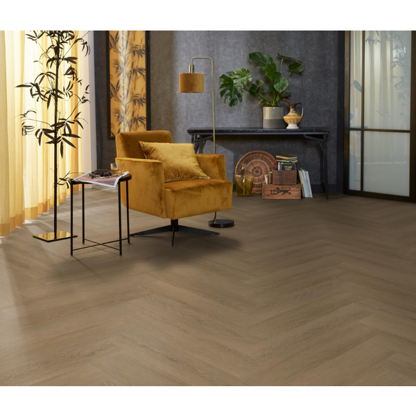 De Herringbone is onderdeel van de vtwonen by Floorlife collectie. Het patroon van deze vloer lijkt letterlijk op een visgraat, omdat elke plank loodrecht op de andere plank staat. Met deze visgraat pvc vloer geef je je interieur karakter. Vanwege het waterbestendige karakter is de Herringbone ook perfect voor in een keuken of hal.