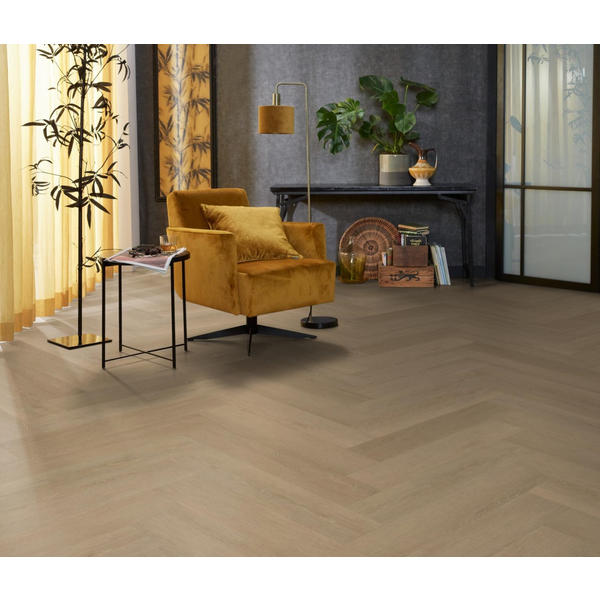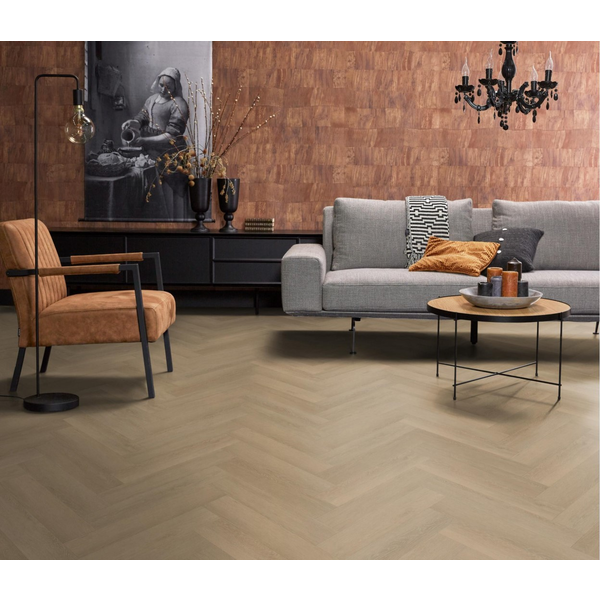 Het levendige visgraatmotief van deze vtwonen by Floorlife pvc vloer geeft jouw interieur een prachtig klassiek karakter. Het patroon van de Herringbone lijkt letterlijk op een visgraat, omdat elke plank loodrecht op de andere plank staat. Deze Herringbone is voorzien van een geluiddempende onderlaag van 10 dB, hierdoor wordt het contactgeluid verminderd.
