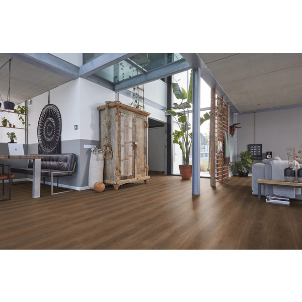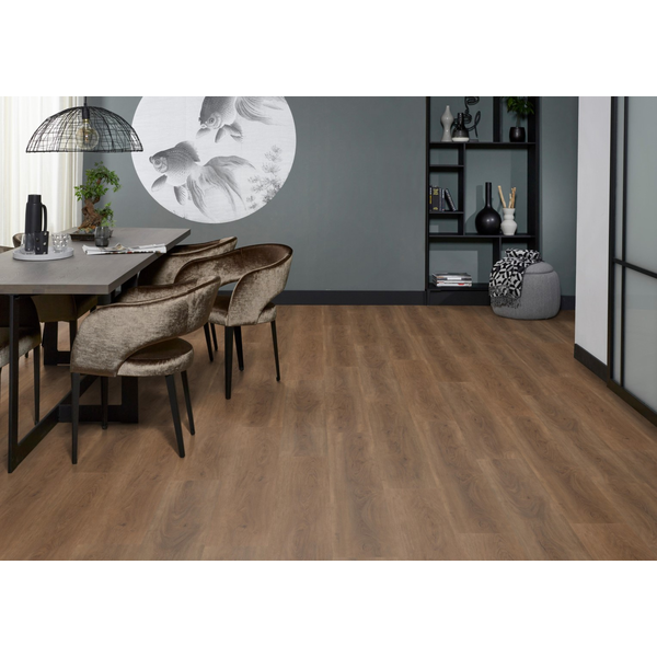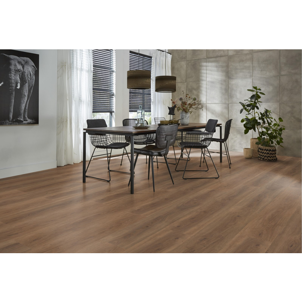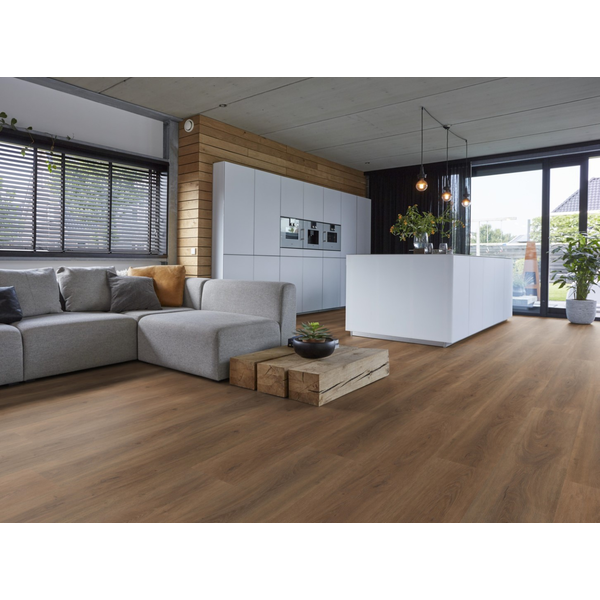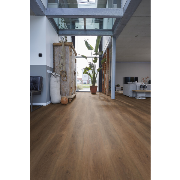 Deze pvc vloer kenmerkt zich door zijn lange en extra brede planken, hierdoor zijn deze pvc-stroken erg geschikt voor een grotere woonkamer. Door de robuuste natuurgetrouwe structuur is de vloer nauwelijks van een echte houten vloer te onderscheiden. De 10dB geluiddempende onderlaag bij de click variant zorgt voor extra comfort en demping van het contactgeluid, ideaal voor in appartementen.