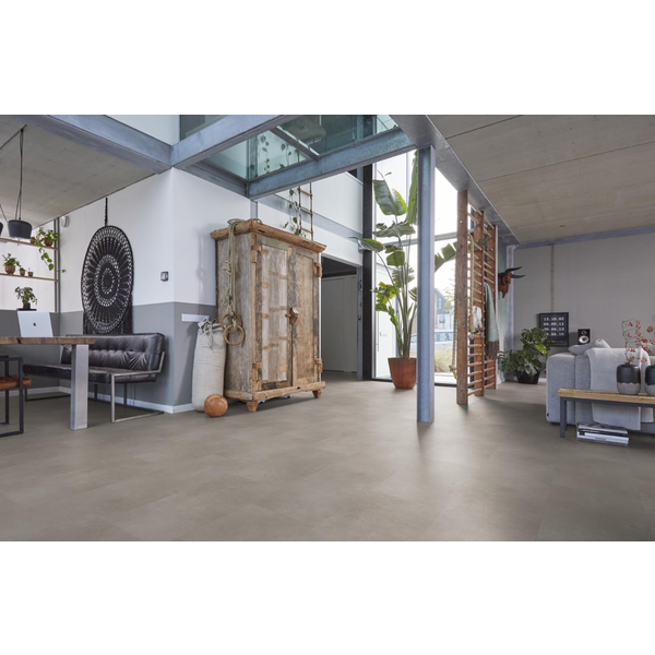 Betonlook pvc is tegenwoordig nauwelijks te onderscheiden van een echte betonnen vloer. Met de Southwark creëer je gegarandeerd een stoere en industriële look. Deze tegel is goed te combineren met vloerverwarming en -koeling en is bovendien ook nog eens waterbestendig.