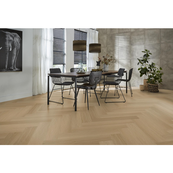 De Yup Fulham visgraat heeft veel weg van een echte houten visgraatvloer, door de natuurgetrouwe uitstraling. Het legpatroon is speels en geeft een klassieke en luxe uitstraling aan de vloer. De click variant van deze vloer is voorzien van een 10 dB geluiddempende onderlaag, hierdoor is de vloer heerlijk stil. Een prachtig staaltje vakmanschap, perfect voor jouw woning.