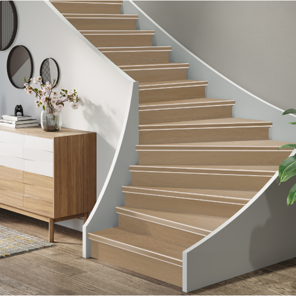 • 4 stootborden van 18 x 130 cm in dezelfde kleur als de treden