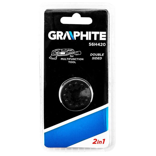 Graphite 2-in-1 adapter voor algemeen gebruik voor meerdere apparaten verbeterd het gebruik van verschillende krachtige multitools zonder dat gereedschapspunten van hetzelfde merk nodig zijn (inclusief schrapers, messen, wielen, slijpplaten, slijpvoeten, enz.). De dubbele stijl is compatibel met GRAPHITE multitools. Zorgt voor een veilige en veilige bediening van verschillende gereedschapspunten met een optimale krachtoverbrenging. Gemaakt van duurzaam materiaal dat bestand is tegen beschadiging en slijtage. Productkenmerken: 2-in-1 dubbelzijdige stijl Verpakking: dubbele blisterverpakking